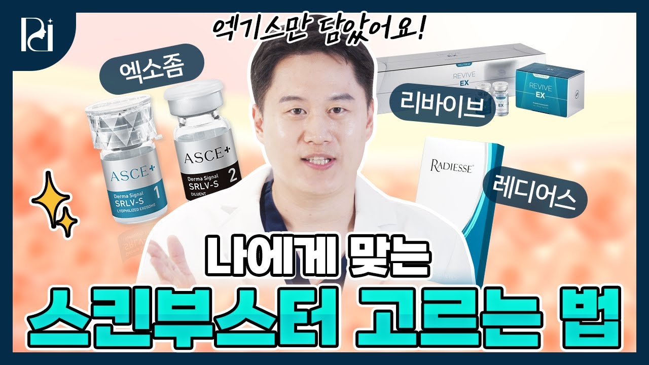 이번 영상에서는 피부과전문의가 세 가지 대표 스킨부스터, 엑소좀·리바이브·레디어스를 소개하고 각 제품이 어떤 피부 상태에 적합한지 알려드립니다.